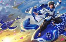 庄周的大招在释放时,会召唤一条巨大的水龙,水龙翻滚的过程中,会有鱼儿在空中欢腾跳跃,场面非常震撼。